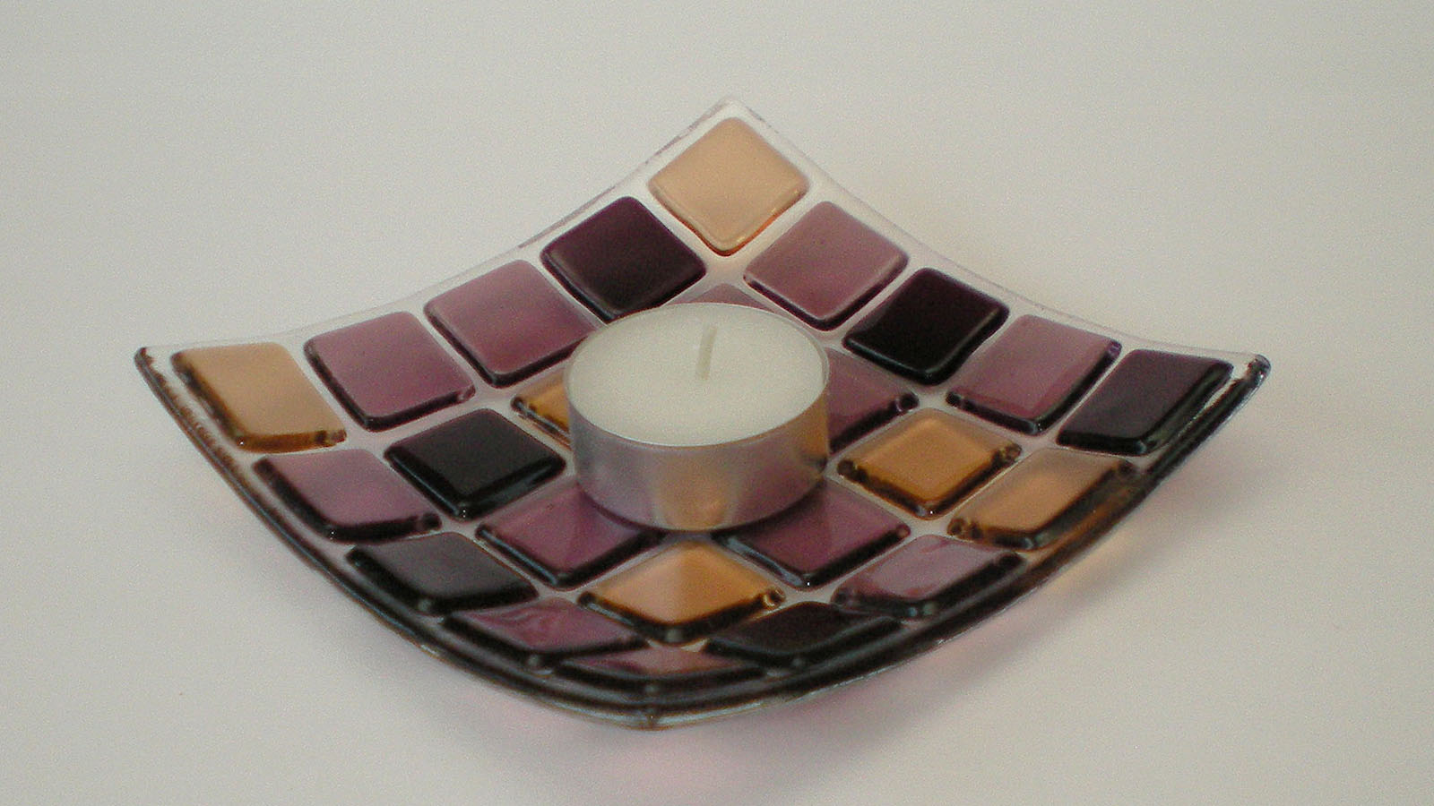 Toisena lasikurssilla valmistunut kynttilän alunen. Tai meneehän tämä vaikka teepussin alusenakin. Aiemmin tekemäni ovat tällä hetkellä kynttilöiden alla, mutta ovat toimineet myös korvakorulautasina sekä avainten säilytyksessä.