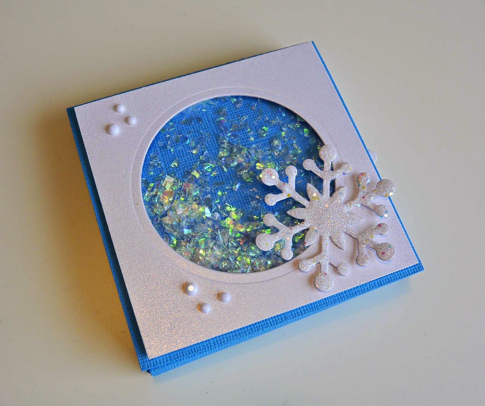 Kanteen tein helistinkortin tyyliin lumisadeikkunan, jossa korttia heiluttamalla leijailevat "lumihiutaleet".